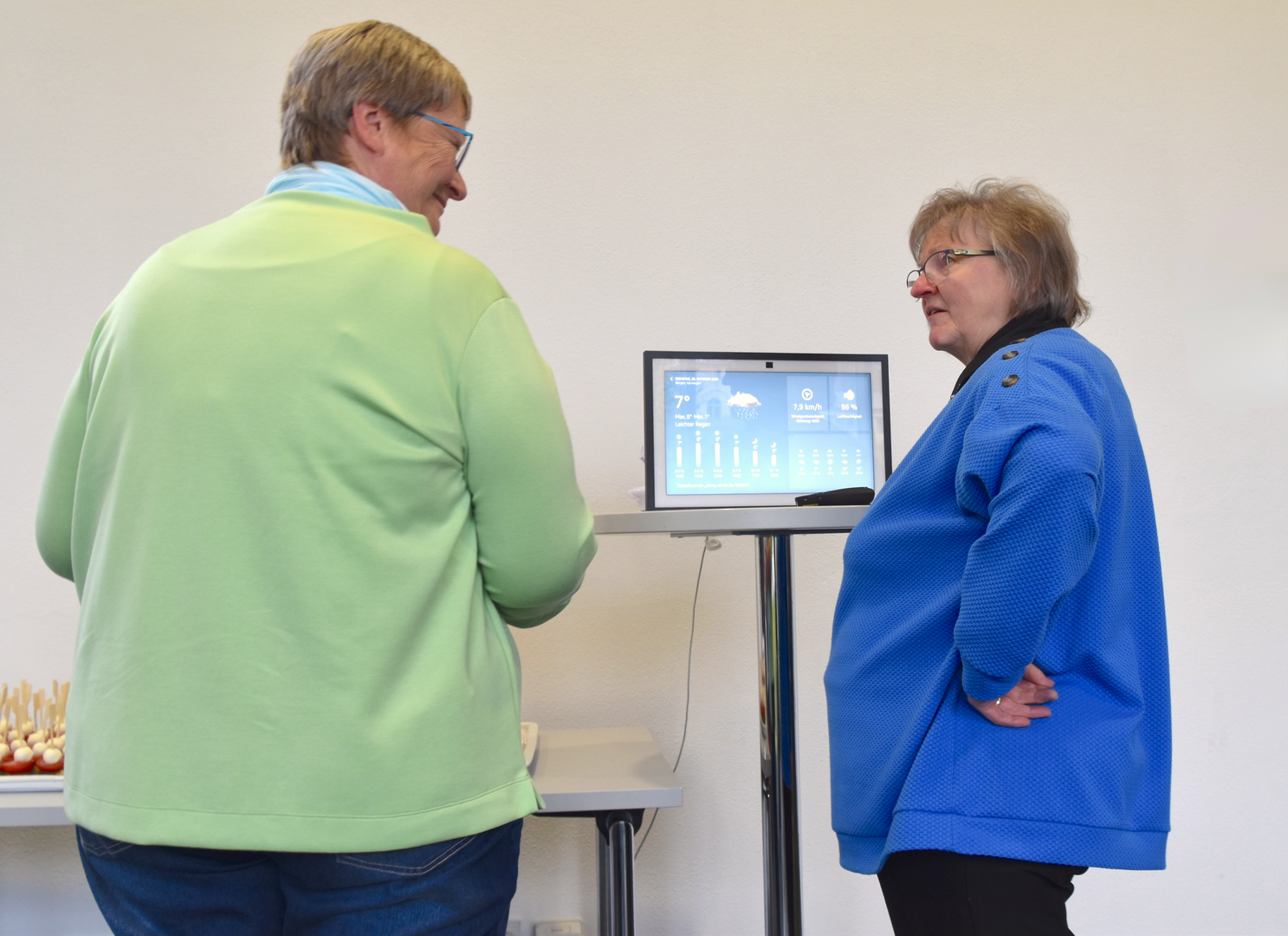 Beim gemeinsamen Mittagessen nutzten die Teilnehmenden die Gelegenheit, sich über die vorgestellten Projekte auszutauschen und eigene Erfahrungen zu teilen. Dabei wurde deutlich, dass Offenheit, gegenseitige Unterstützung und gute Informationsangebote entscheidend dafür sind, dass Technik im Alter als Bereicherung wahrgenommen wird.