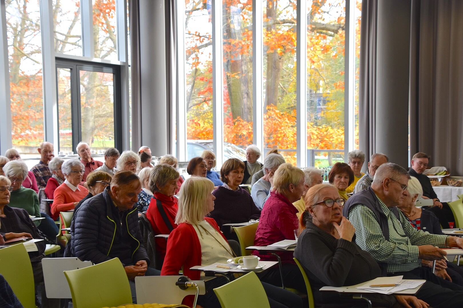 Über 60 Seniorinnen und Senioren und Fachakteure tauschen sich bei einer Veranstaltung um digitale Teilhabe im Alter über Chancen, Herausforderungen und praktische Ansätze im Umgang mit digitalen Technologien aus.
