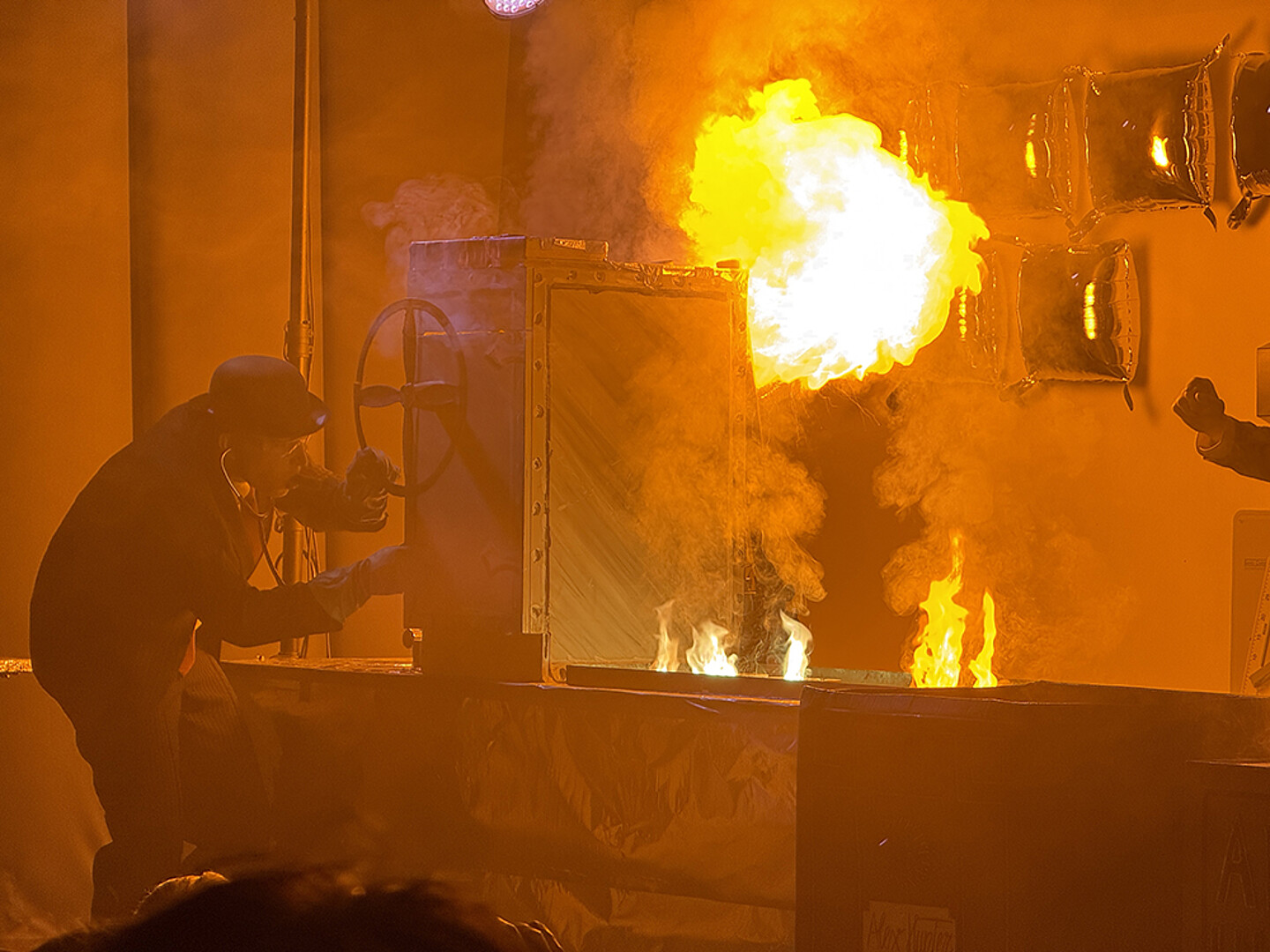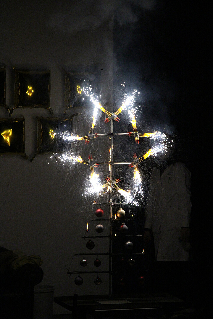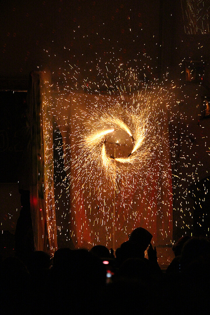 • Feuer- und Flammenspiele, bei denen sich farbig leuchtende Metallsalze spektakulär über die Bühne zogen.
