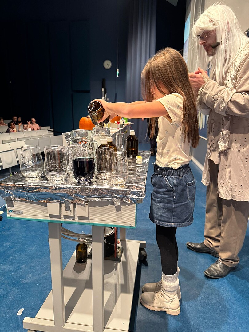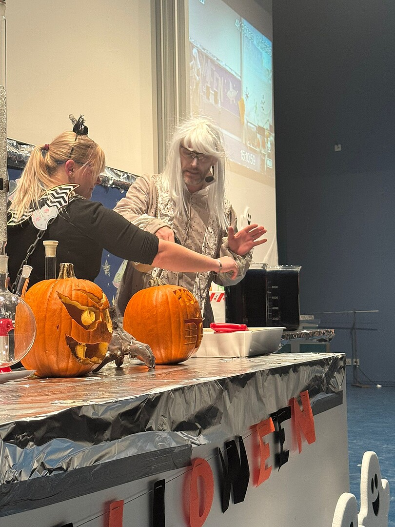 Das Team um Diplomchemiker Matthias Jeschke brachte bereits im Vorfeld zur Chemieschauvorlesung Kinderaugen zum Leuchten. Im Rahmen der Kinderakademie fand am 7. November 2025 die Chemieschauvorlesung für Kinder unter dem Titel „Halloween mal anders – die schaurige Chemievorlesung“ statt. Die Veranstaltung richtete sich ausschließlich an Kinder zwischen 8 und 12 Jahren. Spannende und kindgerechte Experimente verbanden Wissenschaft mit einem schaurig-spaßigen Thema.
