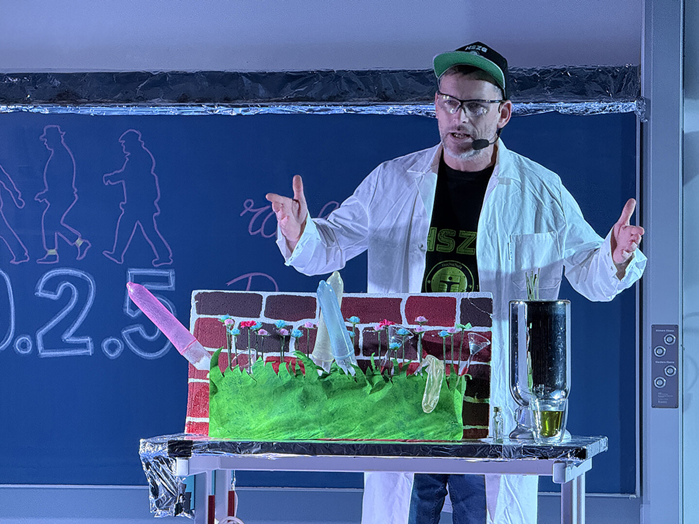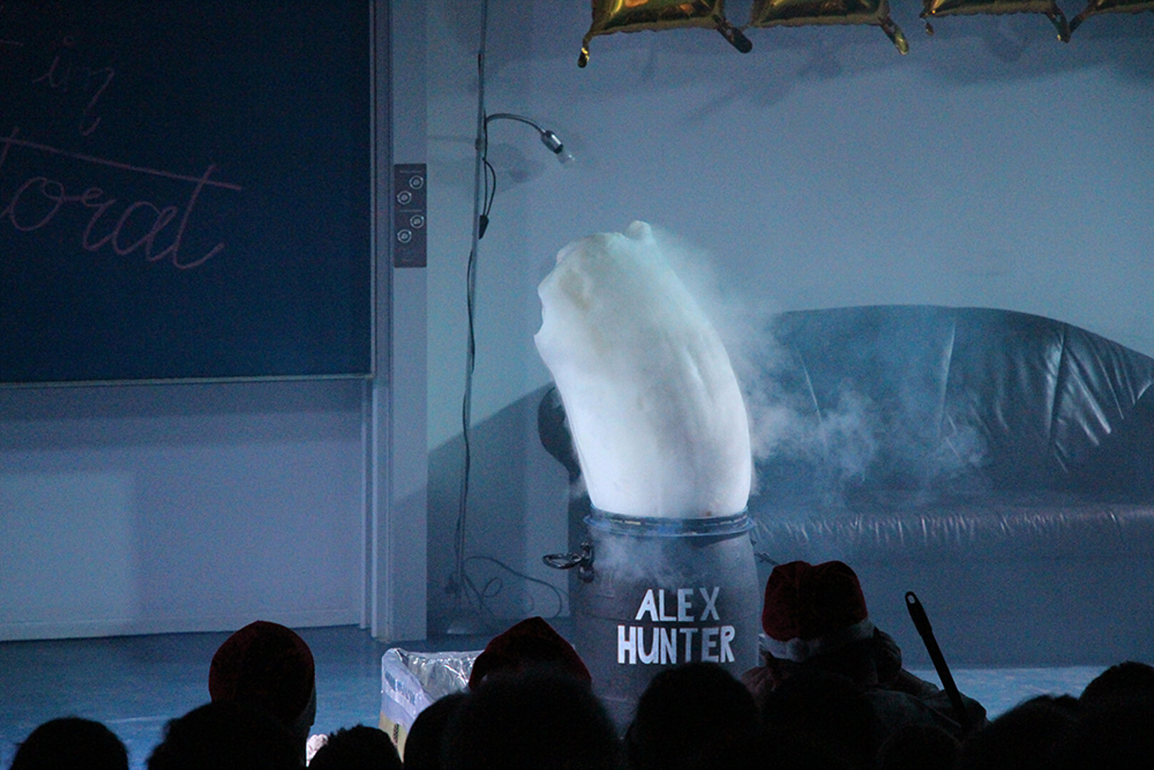 Zwischen den Experimenten spielte das Team humorvolle Szenen rund um die Frage, wie das Rektorat mit der plötzlichen Rückkehr des „berüchtigt-unberechenbaren“ Egon umgeht – inklusive einiger selbstironischer Seitenblicke auf den Hochschulalltag. Knicklichter, Eis, Bier und Menschellimo sorgten für das passende Ambiente. So wurde aus der größten Hochschulbrauerei Zittaus „Ein edles Kratzsch“ serviert. Das von Karin Hollstein und Alexander Kratzsch signierte Fass wurde am Ende der Veranstaltung nach zwei Geboten für 25 Euro versteigert.