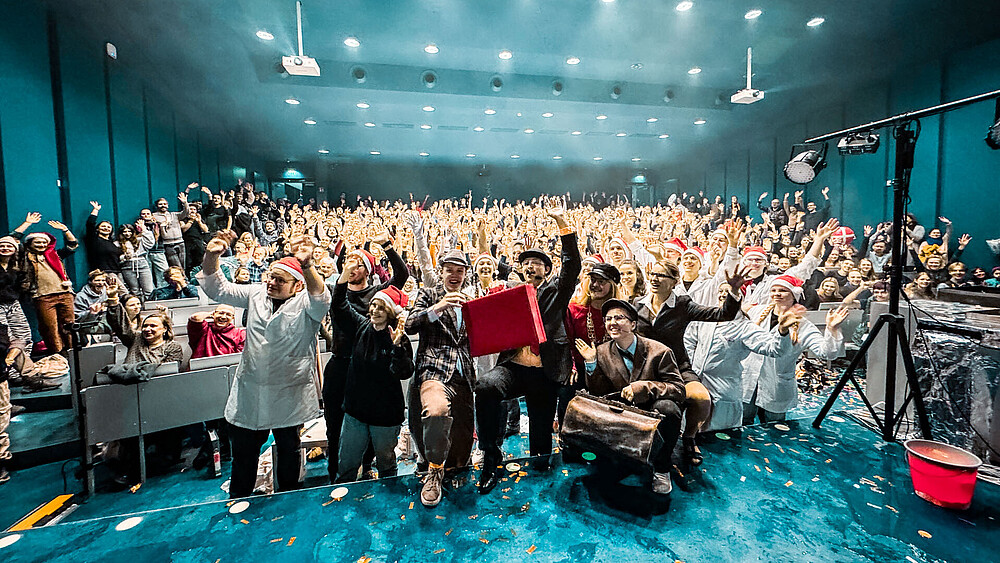Wie in den Vorjahren sei das Zusammenspiel von humorvoller Handlung und spektakulären Experimenten der Schlüssel zum Erfolg, so Jeschke weiter. “Die Schauvorlesung lebt dabei vom Zusammenspiel von Studierenden, Mitarbeitenden und Alumni”, ist der Diplomchemiker überzeugt.