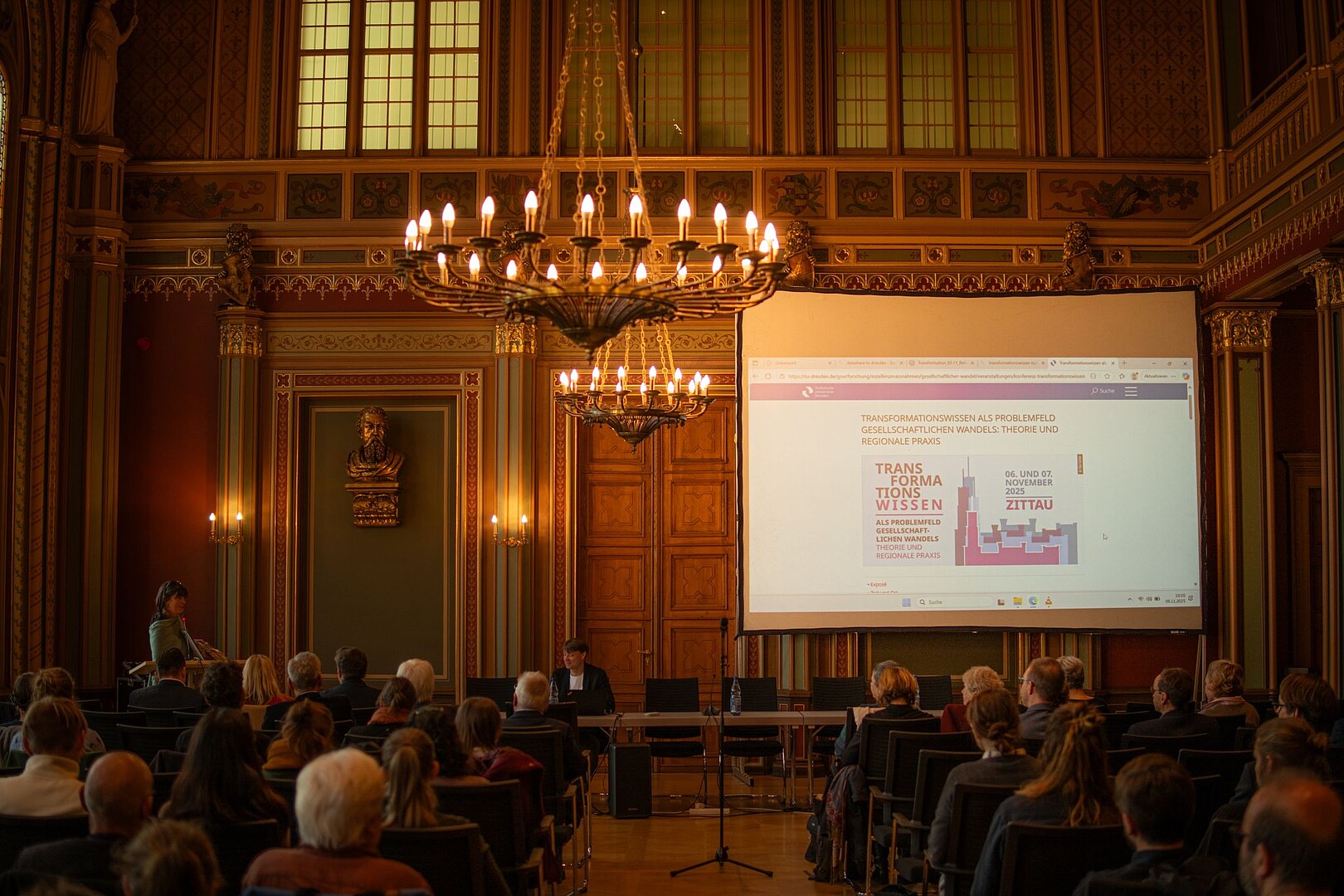 Am 6. und 7. November 2025 veranstaltete das TRAWOS-Institut (Institut für Transformation, Wohnen und soziale Raumentwicklung) der Hochschule Zittau/Görlitz gemeinsam mit einem breiten Bündnis wissenschaftlicher und regionaler Institutionen die Konferenz „Transformationswissen als Problemfeld gesellschaftlichen Wandels: Theorie und regionale Praxis“ – im Rathaus Zittau und an der Hochschule Zittau/Görlitz. Die Veranstaltung brachte Wissenschaft und Praxis zusammen, um den Strukturwandel in der Lausitz und die damit verbundenen Transformationsprozesse zu diskutieren.