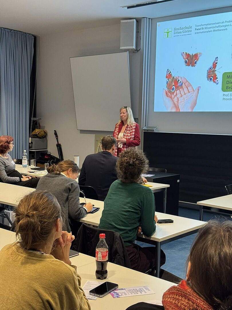 Im Panel „Wissenschaftsregion Lausitz: Wissenschaft zwischen Regionalentwicklung und internationalem Wettbewerb“ sprach beispielsweise Prof. Dr. Sophia Keil, Prorektorin für Forschung, Transfer und Internationalisierung, über die Rolle der Hochschule Zittau/Görlitz im Wandel der Region und im Dreiländerraum.
