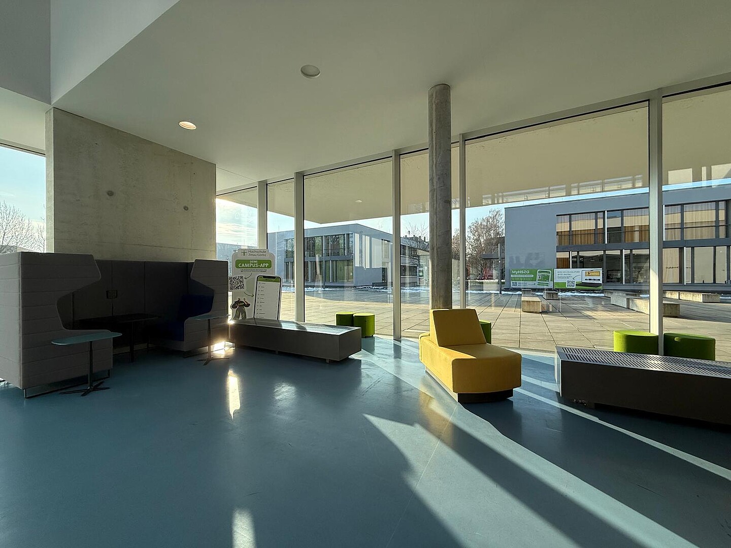 Darüber hinaus wurden ausgewählte Freiflächen an den Campusstandorten in Zittau und Görlitz aufgewertet und mit innovativen, mobil einsetzbaren und flexibel umbaubaren Möbeln ausgestattet. Die Umgestaltung erfolgte in enger Zusammenarbeit mit den Fakultäten. Ziel ist es, die Verweildauer auf dem Campus zu erhöhen und neue offene Lernbereiche zu schaffen, die zum Austausch und gemeinsamen Arbeiten einladen.